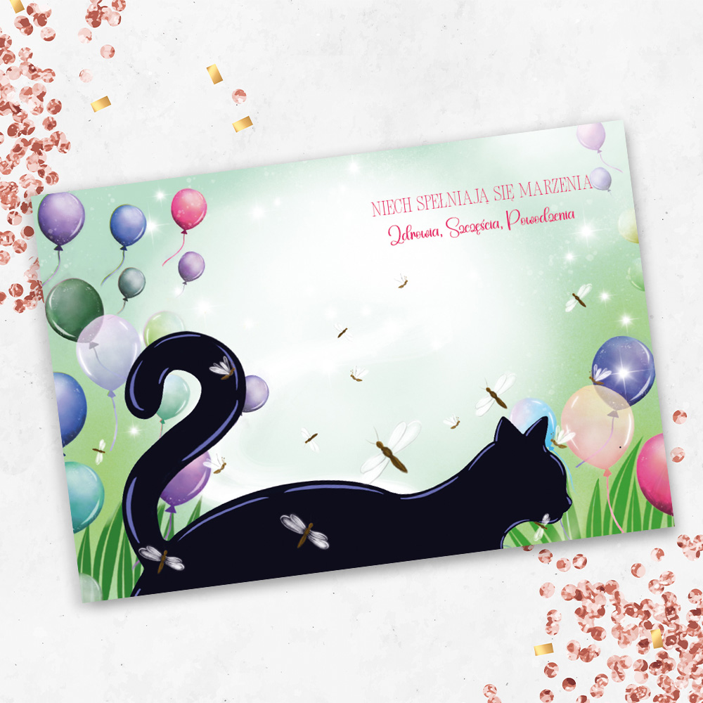 Karnet A5 WITCH CAT wydrukowany na wysokiej jakości papierze formatu A5. Karnet uszlachetniony złotą folią i tłoczeniem. W zestawie koperta.