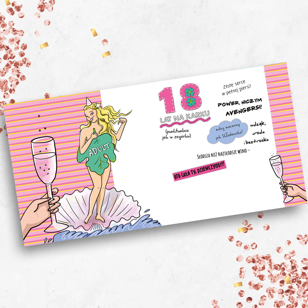 Karnet KW 18 SUPERWOMEN wydrukowany na wysokiej jakości papierze formatu 15 x 15 uszlachetniony złotem i tłoczeniem. W zestawie kolorowa koperta.