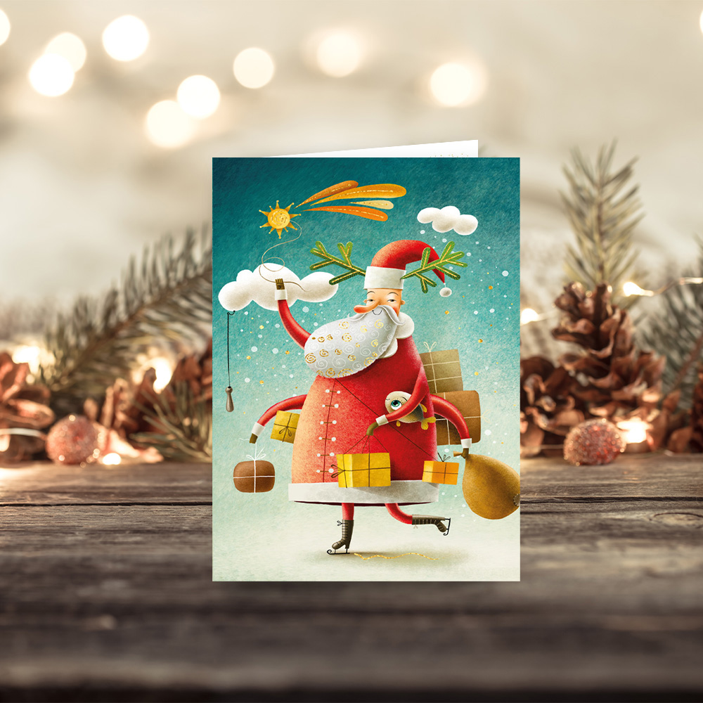 MINI Karnet MIKOŁAJ SZ w formacie 11,6 x 8,1 cm, złożony 5,8 x 8,1 cm. Wydrukowany na wysokiej jakości papierze, uszlachetniony złotem. Mini karnet  z grafiką w środku. Zamknięty w woreczek foliowy z kopertą.