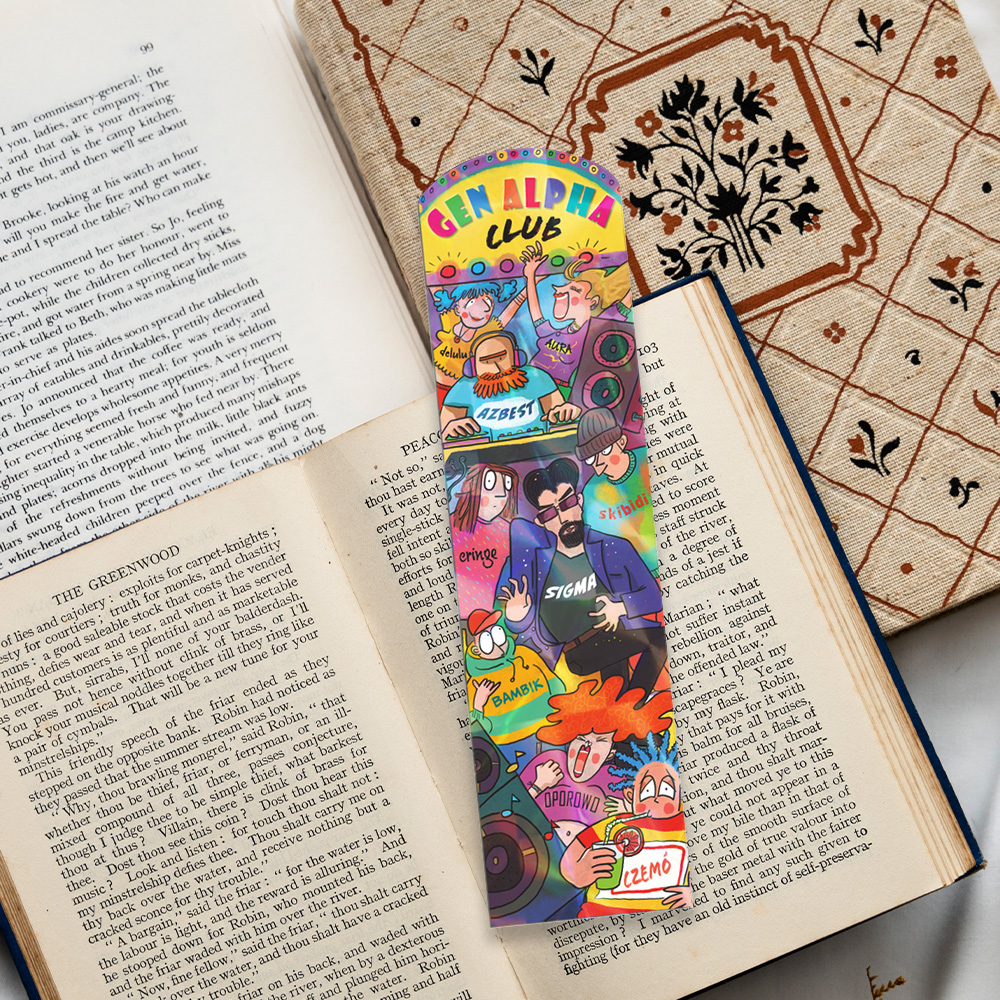 Zakładka fabularna GEN ALPHA jest to uniwersalna, praktyczna i gruba zakładka do książki. Zakładka dwustronna z grafiką i historyjką. Uszlachetniana folią soczewkową