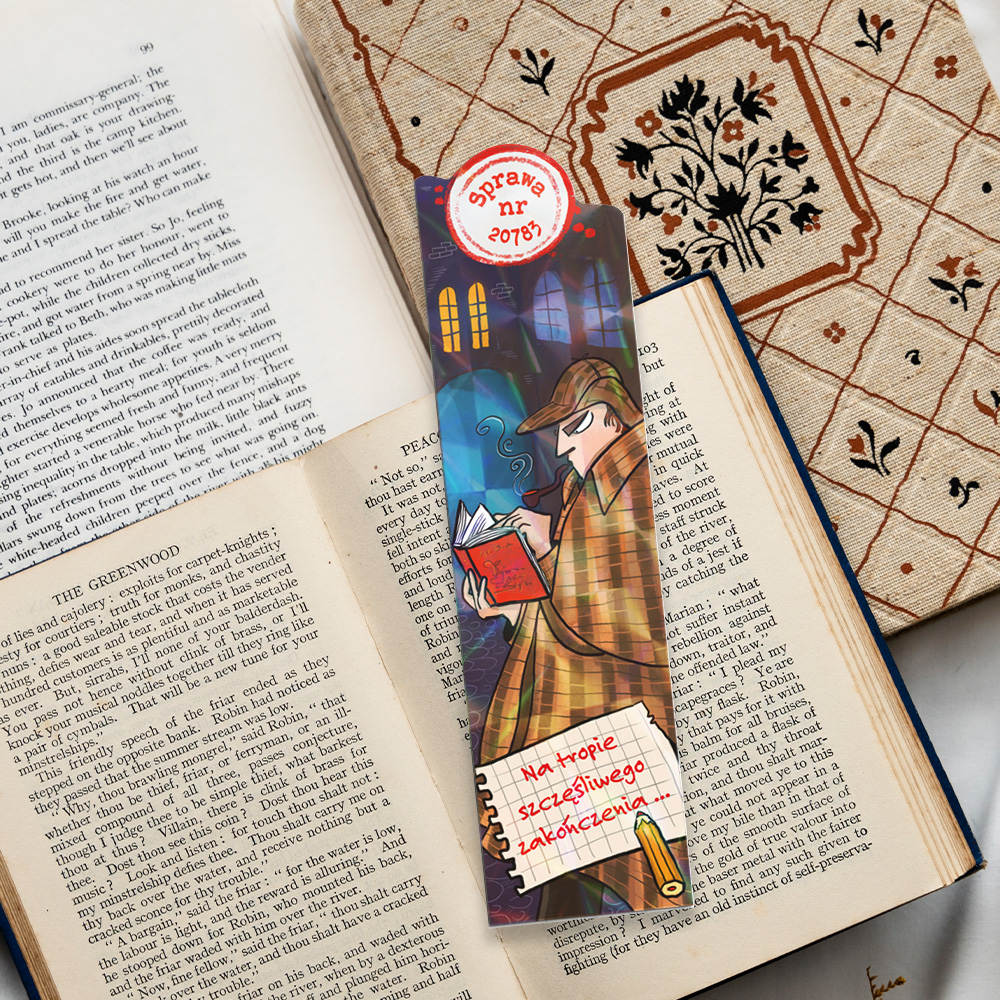 Zakładka fabularna SPRAWA jest to uniwersalna, praktyczna i gruba zakładka do książki. Zakładka dwustronna z grafiką i historyjką. Uszlachetniana folią soczewkową