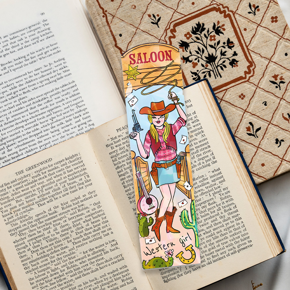 Zakładka fabularna WESTERN jest to uniwersalna, praktyczna i gruba zakładka do książki. Zakładka dwustronna z grafiką i historyjką. Uszlachetniana folią soczewkową